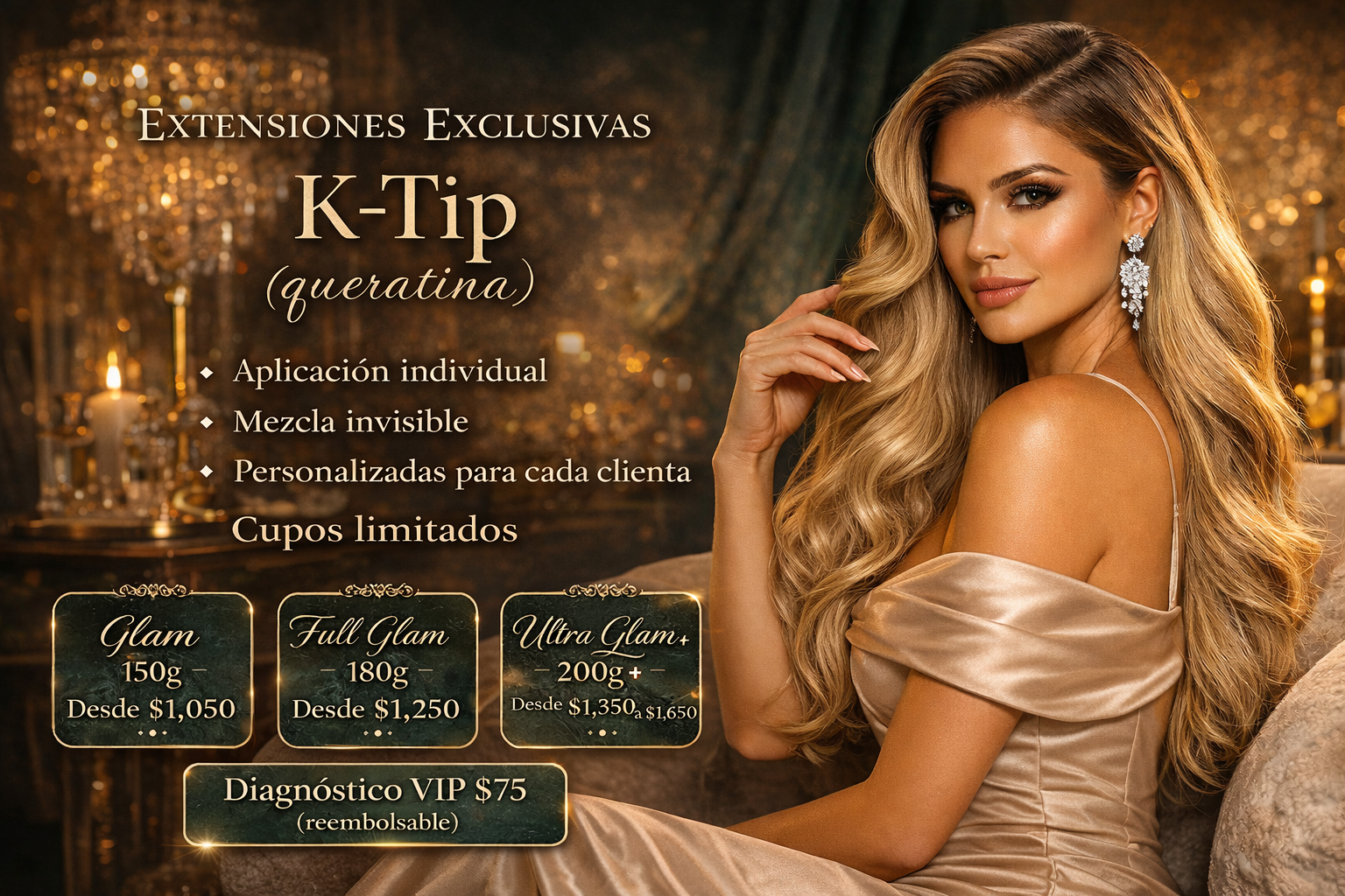 Extensiones calidad premium para lograr largo glam y volumen tipo revista con un acabado natural, cómodo y de alta duración.